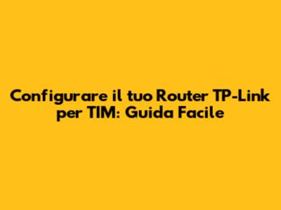 Configurare Il Tuo Router TP-Link Per TIM: Guida Facile