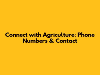 Connect With Agriculture: Phone Numbers & Contact