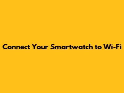 Connect Your Smartwatch To Wi-Fi
