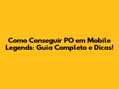 Conquiste O PO Em Mobile Legends: Guia Completo E Dicas!
