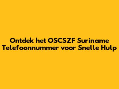 Samenvatting: Het Belang van het OSCSZF Suriname Telefoonnummer