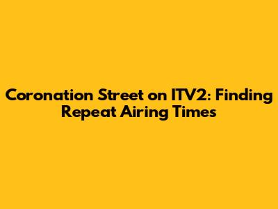Coronation Street On ITV2: Repeat Airing Times