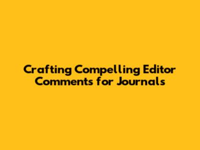 Crafting Compelling Editor Comments For Journals