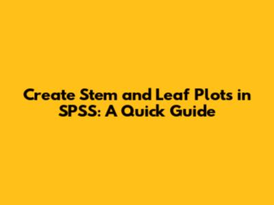 Create Stem And Leaf Plots In SPSS: A Quick Guide