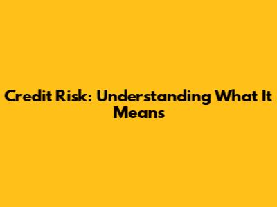 Credit Risk: Understanding What It Means