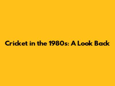 Cricket In The 1980s: A Look Back