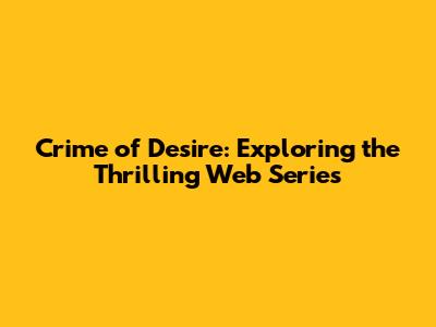 Hey guys! Ever stumbled upon a web series that just completely sucks you in? Well, get ready, because we're diving headfirst into Crime of Desire! This series is a rollercoaster of suspense, mystery, and oh-so-much drama. If you're a fan of thrillers, you're in for a real treat. We're going to cover everything from the basic plot to character analysis, and even where you can watch the whole thing. So buckle up, because we're about to explore the captivating world of Crime of Desire!