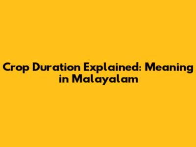 Crop Duration Explained: Meaning In Malayalam