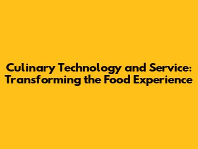 Culinary Tech & Service: Transforming The Food Experience