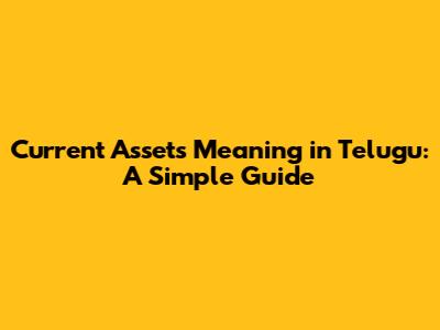 Current Assets Meaning In Telugu: A Simple Guide