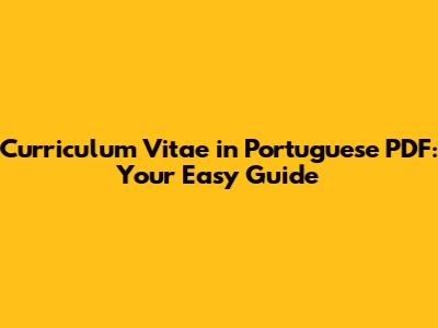 Curriculum Vitae In Portuguese PDF: Your Easy Guide