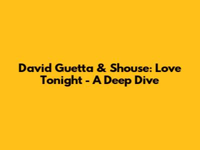 David Guetta & Shouse: Love Tonight - A Deep Dive