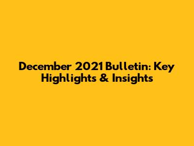 December 2021 Bulletin: Key Highlights & Insights