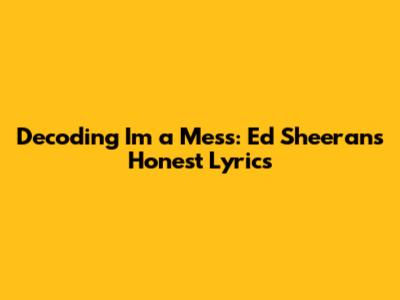 Hey music lovers! Ever found yourself utterly captivated by a song? For many, Ed Sheeran's 'I'm a Mess' is one of those tracks. It's raw, it's vulnerable, and it's a testament to the fact that sometimes, we're all just a little bit of a mess. In this deep dive, we're going to dissect the lyrics of 'I'm a Mess', exploring its meaning, the story it tells, and the powerful impact it has had on listeners worldwide. So, grab your headphones, get comfy, and let's unravel the beauty of Sheeran's words together.