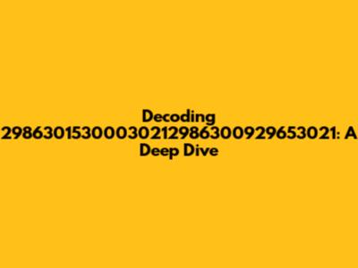 Navigating the digital world often involves encountering seemingly random strings of numbers and characters. Today, we're diving deep into one such sequence: 29863015300030212986300929653021. What could this enigmatic string possibly represent? Is it a code, an identifier, a serial number, or something else entirely? Let's embark on this journey of investigation, exploring various possibilities and attempting to decipher the hidden meaning behind this numerical puzzle.