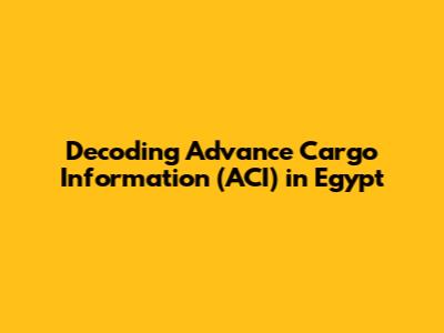 Hey guys, let's dive into something pretty crucial if you're involved in shipping goods to Egypt: Advance Cargo Information (ACI). It's a system Egypt has rolled out to make sure all that cargo coming into the country is legit and everything is above board. This article breaks down everything you need to know, from what ACI actually is, to how it works, and why it's super important for you. So, if you're scratching your head about this, or just want a clearer picture, you've come to the right place. We'll make it as easy as possible to understand.