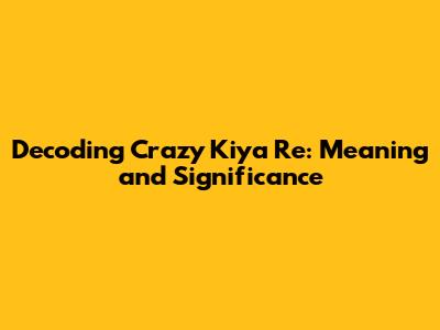 Deep Dive into the Phrase: "Crazy Kiya Re"