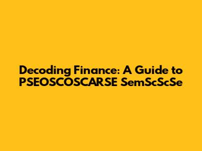 Decoding Finance: A Guide To PSEOSCOSCARSE SemScScSe