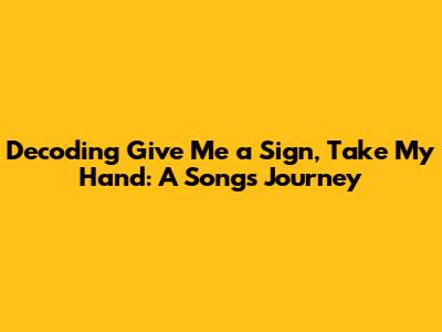 Decoding 'Give Me A Sign, Take My Hand': A Song's Journey