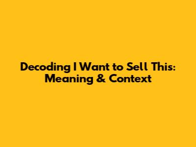 Decoding 'I Want To Sell This': Meaning & Context