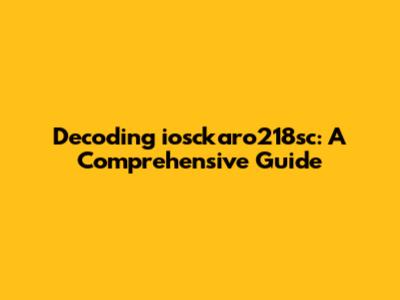 Decoding Iosckaro218sc: A Comprehensive Guide