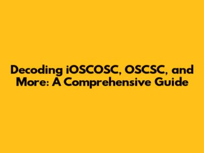 Decoding IOSCOSC, OSCSC, And More: A Comprehensive Guide