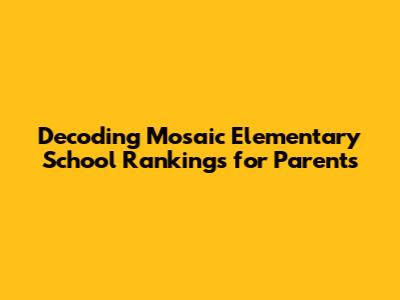 Hey there, fellow parents and curious minds! If you're anything like me, you're always on the hunt for the best educational environment for your kids. And when it comes to elementary schools, especially a place like Mosaic Elementary School, the topic of rankings inevitably pops up. We all want to know where our local schools stand, right? But let's be real, simply looking at a number on a website doesn't tell the whole story. Today, we're gonna dive deep into decoding Mosaic Elementary School rankings and explore what those numbers truly mean, what factors really matter, and how to get a comprehensive picture of what this school offers your little superstars. It's not just about a score, guys; it's about finding the perfect fit where your child can thrive.
