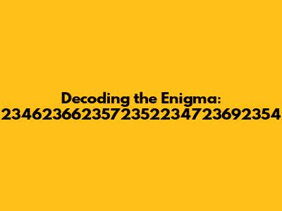 Decoding The Enigma: 2346236623572352234723692354