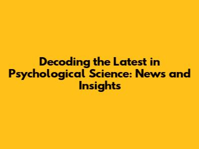 Decoding The Latest In Psychological Science: News And Insights