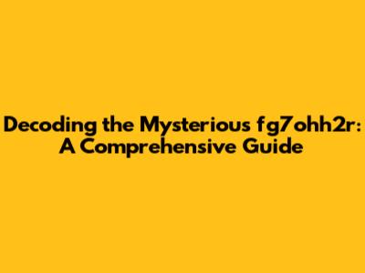 Decoding The Mysterious Fg7ohh2r: A Comprehensive Guide