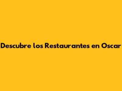Descubre Los Restaurantes En Oscar Oscar Schmidt