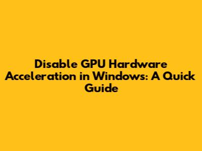 Disable GPU Hardware Acceleration In Windows: A Quick Guide