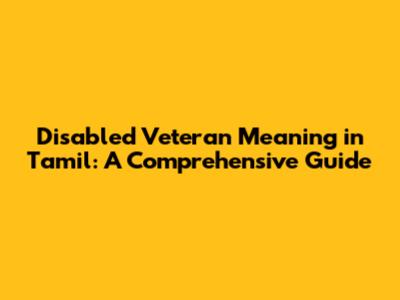 Disabled Veteran Meaning In Tamil: A Comprehensive Guide