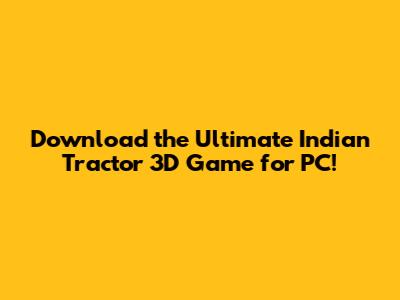 Download The Ultimate Indian Tractor 3D Game For PC!