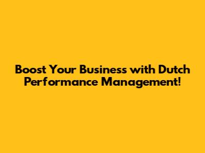 Dutch Performance Management: Boost Your Business