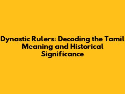 Dynastic Rulers: Unveiling Their Meaning In Tamil