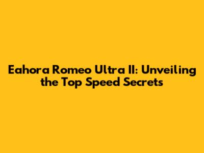 Eahora Romeo Ultra II: Unveiling The Top Speed Secrets