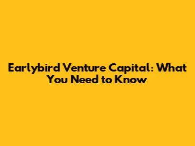 Earlybird Venture Capital: What You Need To Know