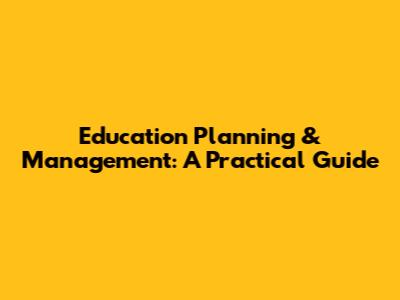 Education Planning & Management: A Practical Guide