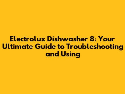 Electrolux Dishwasher 8: Troubleshooting And User Guide