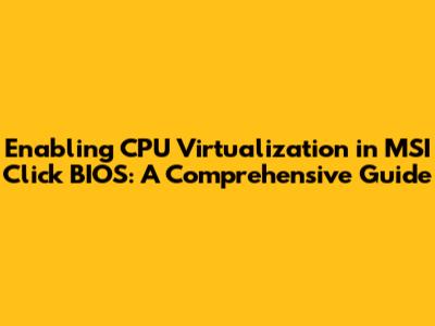Enable CPU Virtualization In MSI Click BIOS: A Quick Guide