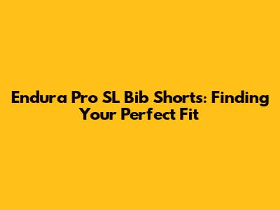 Endura Pro SL Bib Shorts: Find Your Perfect Fit