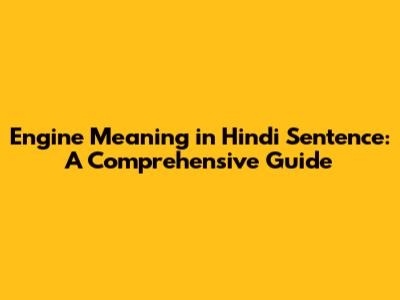 Engine Meaning In Hindi Sentence: A Comprehensive Guide