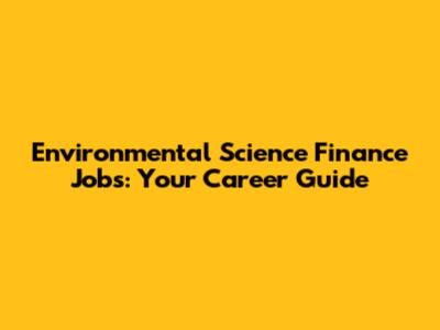 Environmental Science Finance Jobs: Your Career Guide