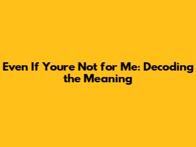 Even If You're Not For Me: Unpacking The Meaning