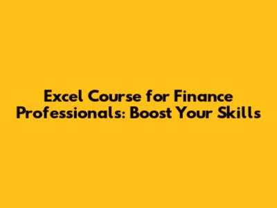 Excel Course For Finance Professionals: Boost Your Skills