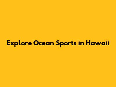 Explore Ocean Sports In Hawaii