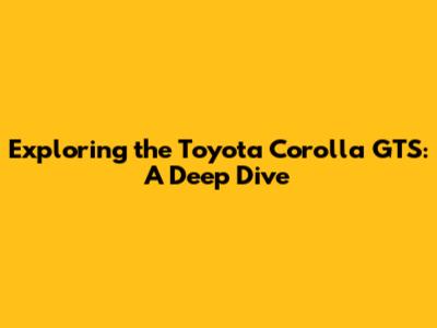 Exploring The Toyota Corolla GTS: A Deep Dive