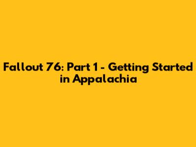 Fallout 76: Part 1 - Getting Started In Appalachia