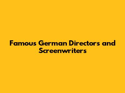 Famous German Directors And Screenwriters